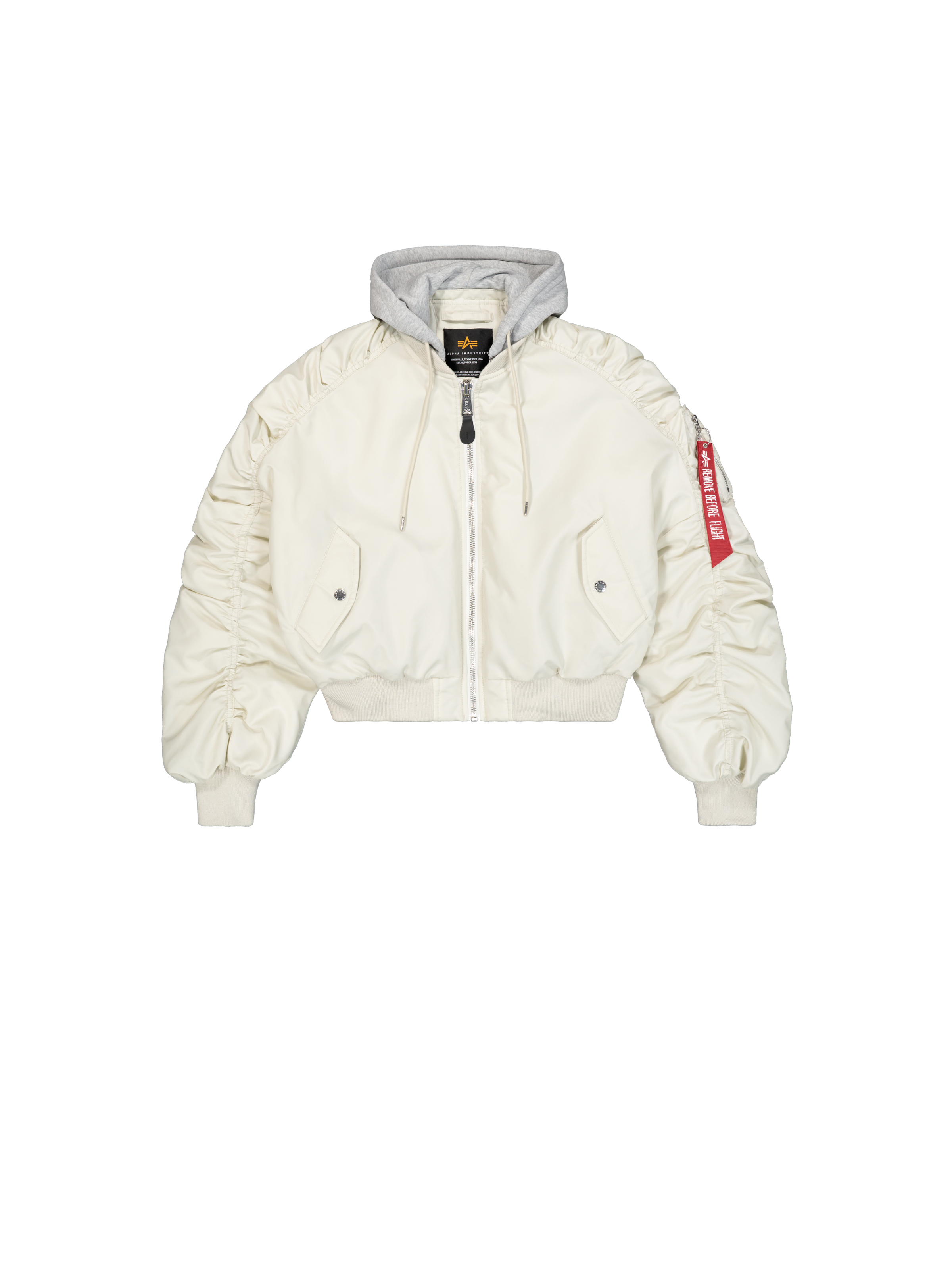 La Short Hooded Light Bomber Jacket Women apporte le style bomber classique d’Alpha Industries dans une silhouette moderne et féminine. Loose Fit pour une coupe décontractée et liberté de mouvement, tandis que le format cropped souligne le style urbain. Extérieur en 100% Coaras Matt Flight Nylon, résistant et mat, robuste mais léger. Veste de mi-saison non doublée, parfaite pour les jours nécessitant flexibilité, protection et style. Deux poches extérieures à bouton et une intérieure, plus la poche utility sur la manche avec RBF Tag, offrent un espace fonctionnel. Le Flag Label sur la manche met en avant subtilement l’ADN Alpha. Les manches puffer donnent une forme marquée et un twist moderne. La capuche amovible ajoute de la polyvalence: avec capuche sportive, sans capuche look bomber classique. Logo Alpha brodé sur la capuche et la patte coupe-vent signale authenticité. Bords-côtes aux manches et à l’ourlet assurent maintien. Sa coupe cropped se combine avec jeans taille haute, cargo ou robe.