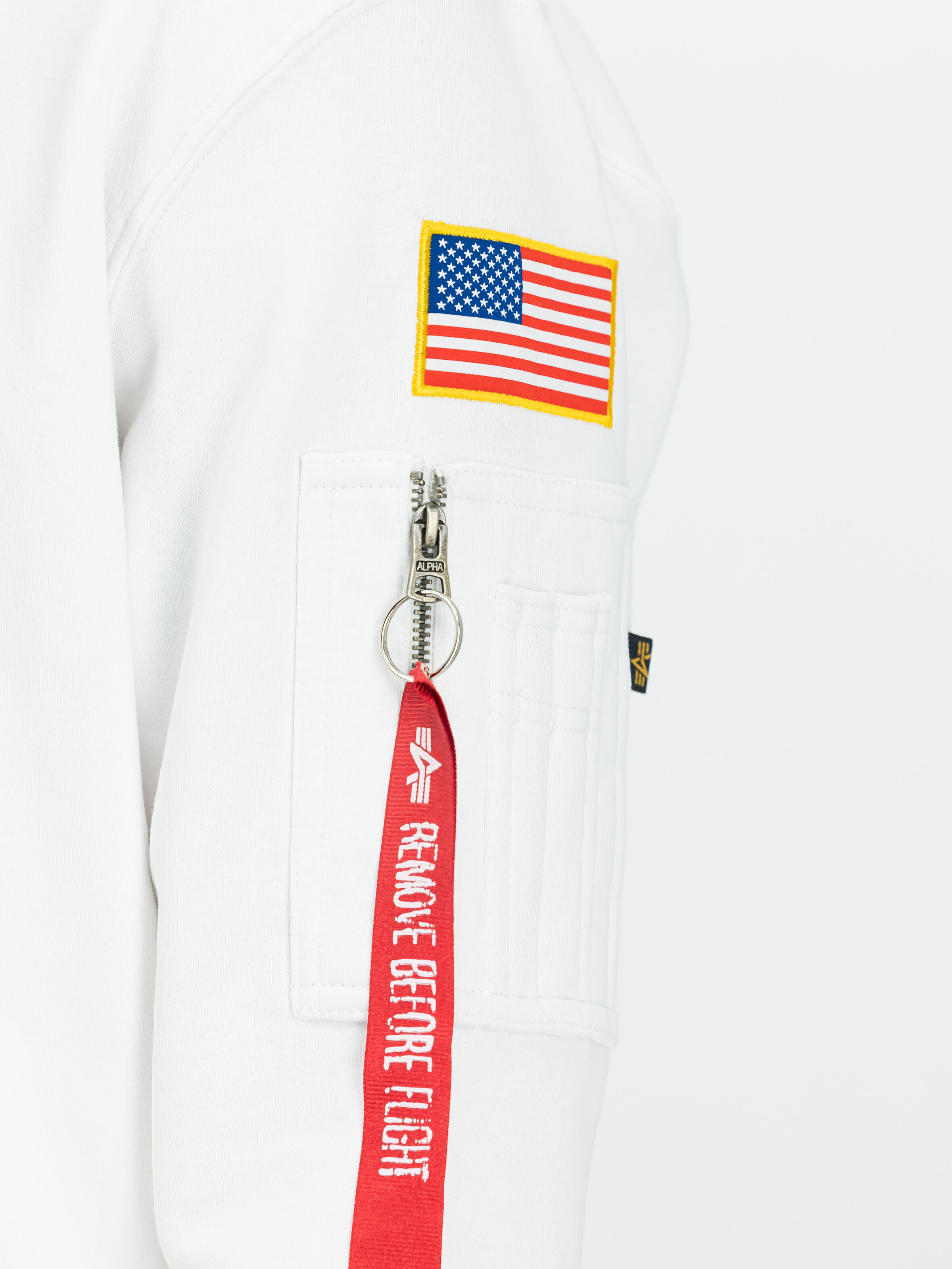 De plus, ce sweat dispose également d'un patch drapeau américain tissé sur la manche gauche, ajoutant une touche patriotique subtile mais significative à l'ensemble. Pour ceux qui aiment garder leurs effets personnels à portée de main, il y a aussi une poche utilitaire pratique avec tag RBF.