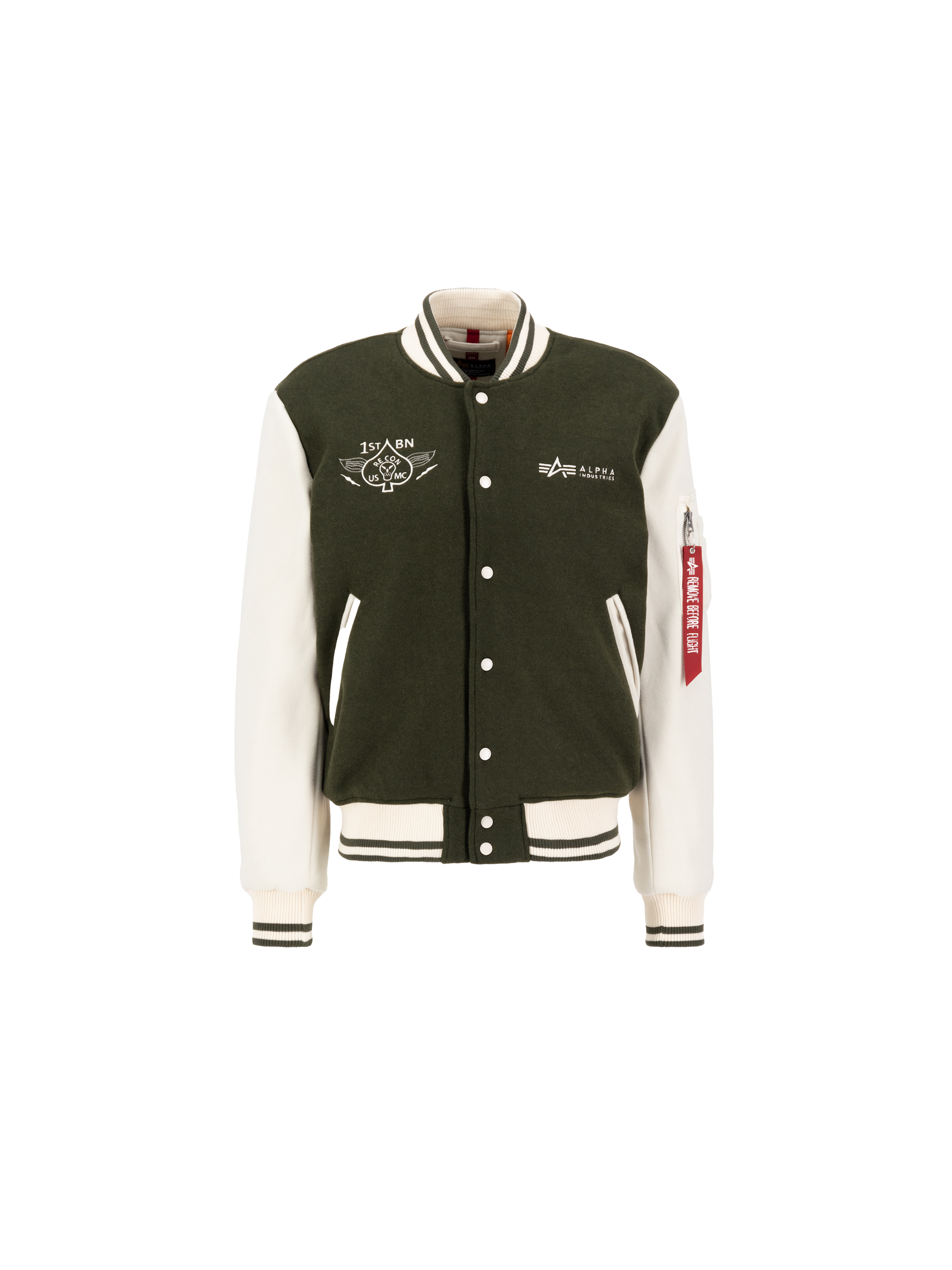 Enfin, la Varsity Air Force Jacket est une veste sans cuir avec un logo Alpha brodé en petit format pour maintenir son allure épurée. La fermeture par bouton-pression offre une facilité d'utilisation et donne à la veste un aspect net et soigné.